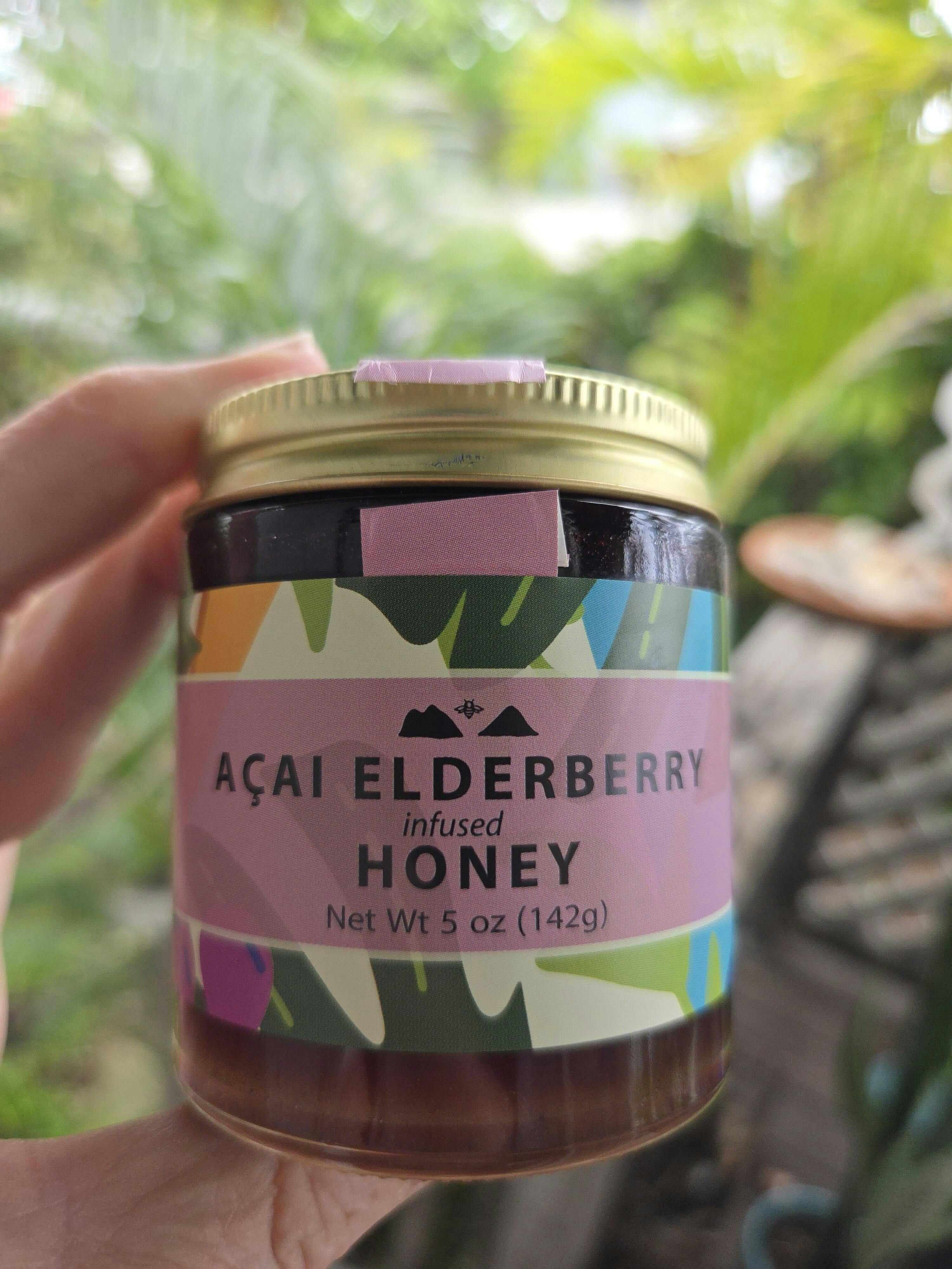 Açai Elderberry Honey is a vibrant, nutrient-packed blend that combines the superfood power of açai berries, the antioxidant-rich benefits of elderberries, and the natural sweetness of raw Hawaiian honey. This unique fusion offers a provides a potent boost of vitamins, minerals, and immune-boosting properties. Perfect for drizzling over your pancakes or oatmeal, stirring into tea, or enjoying by the spoonful, it's a delightful way to enhance both taste and wellness.