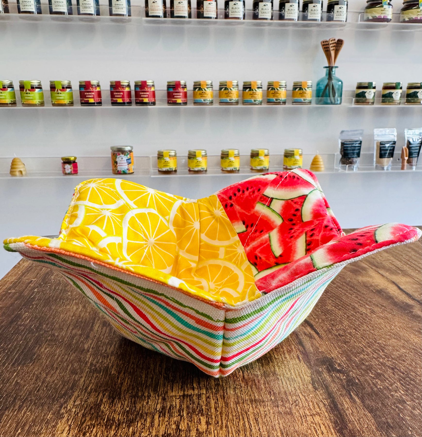 Discover the perfect blend of style and functionality with our handmade bowl cozies. Each cozy is carefully crafted in Kailua, Oahu, using beautiful, high-quality cotton fabric that adds a touch of warmth and personality to your kitchen. Designed to fit most bowls, these cozy essentials protect your hands from hot dishes while keeping your meals fresh and inviting. Whether you're enjoying a bowl of soup, mac n cheese, or warming up a bowl of leftover pasta, these cozy bowl covers are a must-have for any home. Support local craftsmanship with Kailua Honey and bring home a piece of paradise today!