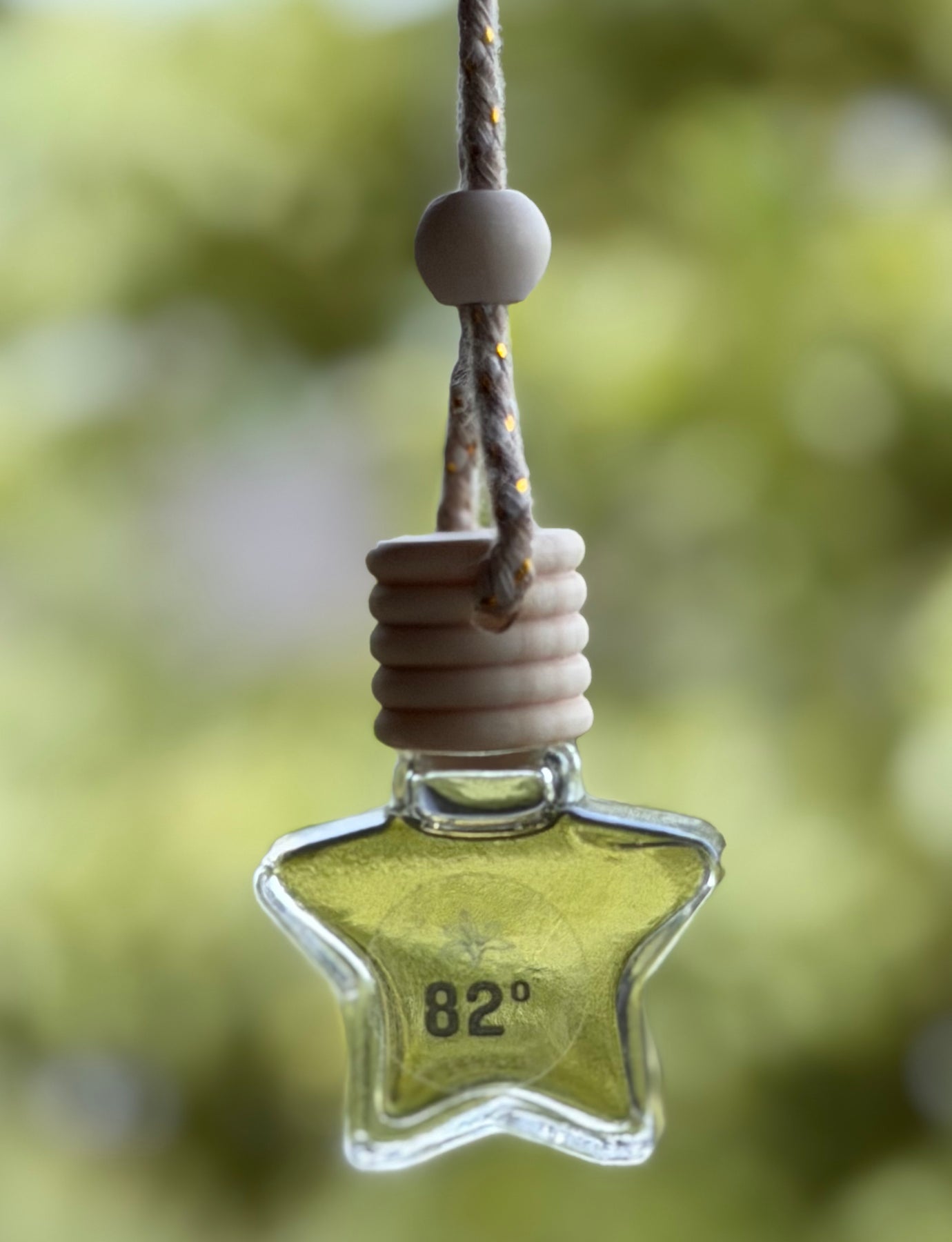 Bring the warmth of a bright, carefree day into your drive. 82 degrees blends vibrant, sun-kissed fruitiness with a refreshing lift, all housed in an elegant glass star shaped bottle topped with a natural wooden lid.